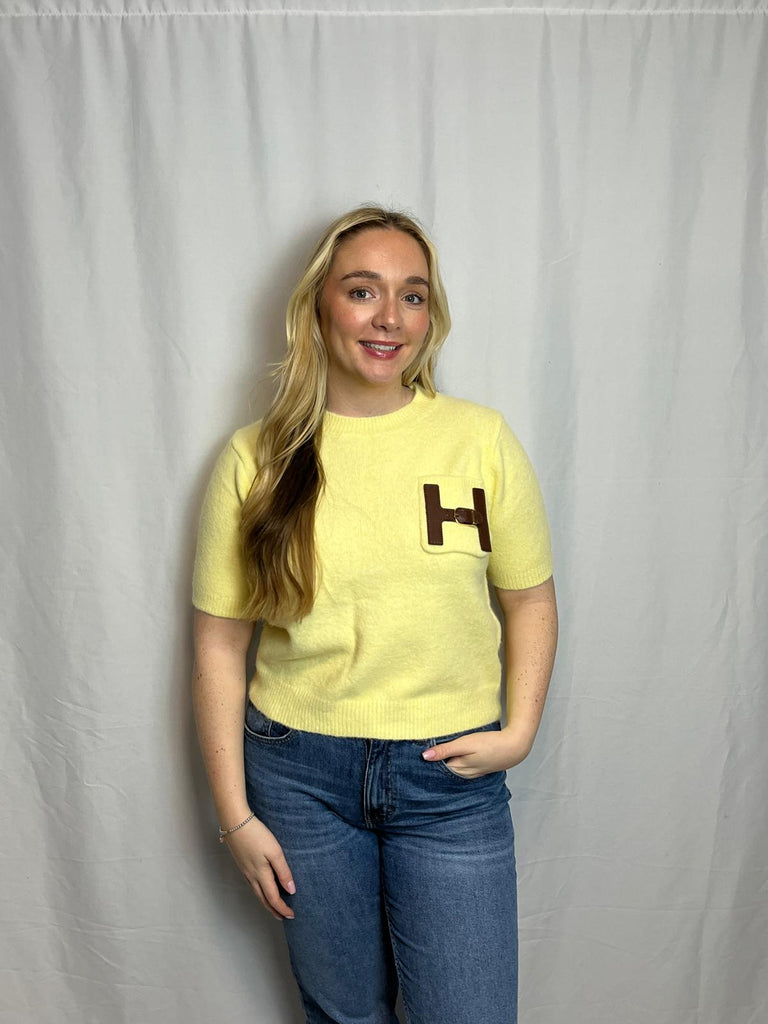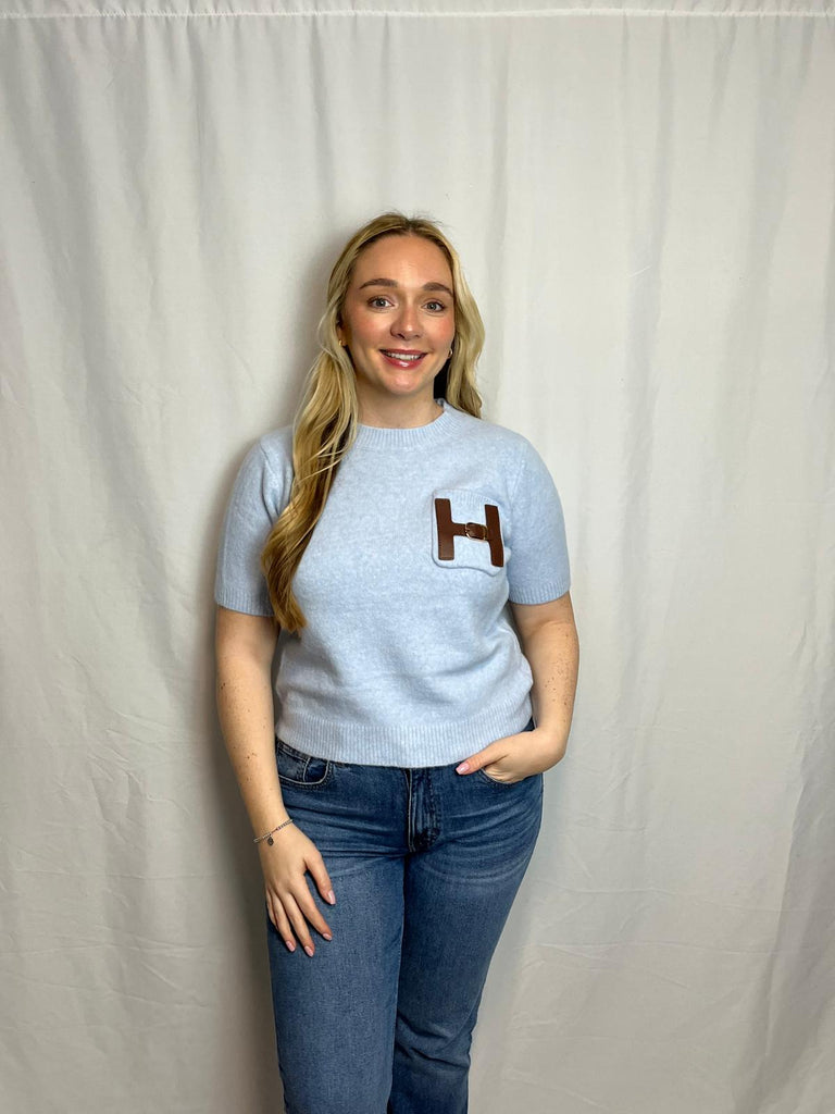 ‘Heather’ H Buckle Pocket Short Sleeve Jumper