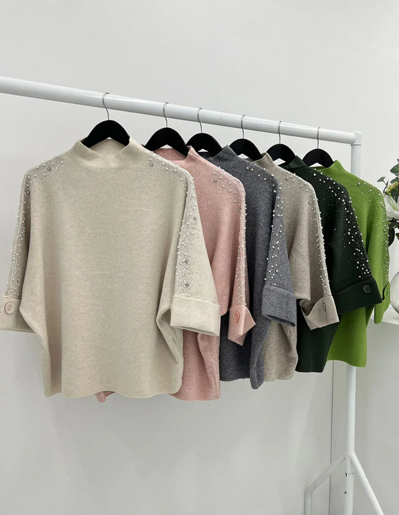 ‘Leigh’ Pearl & Studded Shoulder Knitted Top